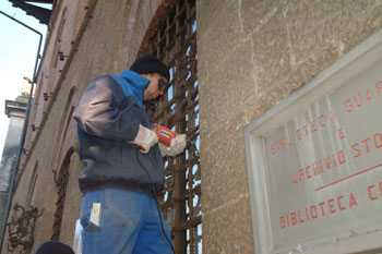 ![]() Renovierungsarbeiten am Gebäude der städtische Bibliothek von Volterra | ||