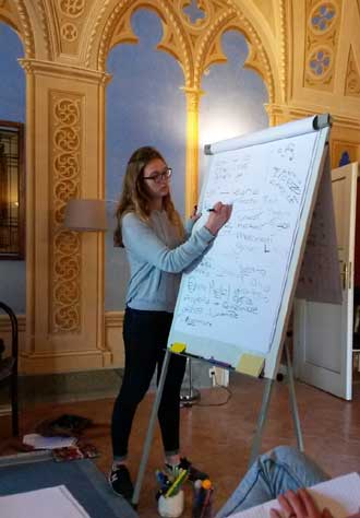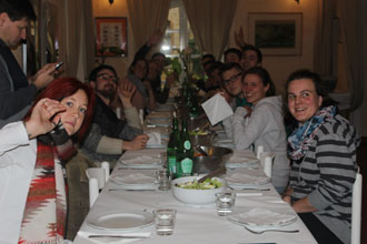 Palagione und Sprachkurs Die Villa Palagione, bekannt als "Internationales Kultur- und Bildungszentrum", ist als offizieller Partner des "Erasmus +" -Projekts der perfekte Ausrichter für unseren circa einmonatigen Sprachkurs. Vertreten durch Antonella Stillitano wurden wir schon am ersten Abend durch die Villa begrüßt. Sie hieß uns dann auch dienstagmorgens in der Villa zu unserem ersten Sprachkurs herzlich willkommen, nachdem wir uns den steinigen, serpentinenreichen Weg von "Il Vile" zur Villa hochgearbeitet hatten. Die Fahrt zur Villa, ein Kraftakt für Mensch und Maschine, sollte von jetzt an zum morgendlichen Ritual unter der Woche werden, das auch den letzten Langschläfer aus seinem Zustand geistiger Umnachtung reißen würde. Der Unterricht wird gestaltet von unseren beiden Lehrerinnen Paola und Anto, die mit ihrem immerwährendem Frohsinn und der Erfahrung von bisher 15 betreuten Gruppen junger deutscher Handwerker innerhalb des "Leonardo"-Projekts für den passenden Rahmen und die nötige Professionalität sorgen, um uns die italienische Sprache näher zu bringen. |