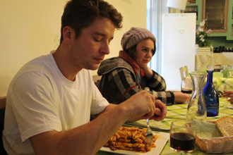 Der Sonntag stand uns zur freien Verfügung und so machten sich bei schönstem Wetter bunt zusammengewürfelte Gruppen nach einem mehr oder minder ausgedehnten Pensum an Schlaf auf den Weg, die Gegend um Volterra unsicher zu machen. Das Wetter spielte uns in die Karten und so genossen wir den Tag bei schönem Sonnenschein, sodass wir gestärkt in die neue Woche starten konnten. Auch in der dritten Woche besuchten wir von Montag bis Freitag jeden Vormittag den Italienischunterricht. Auf dem Programm standen verschiedenste Grammatikthemen wie reflexive Verben oder Präpositionen, bei denen schon der deutsche Namen dem ein oder anderen, der froh war, die Schulzeit hinter sich gebracht zu haben, den Angstschweiß auf die Stirn trieb. Doch mit viel Energie und Kreativität, die sich in Spielen, Gesprächen und Versteigerungen im Unterricht niederschlugen, schafften es Anto und Paola auch diesmal den Stoff an den Mann zu bringen. |
